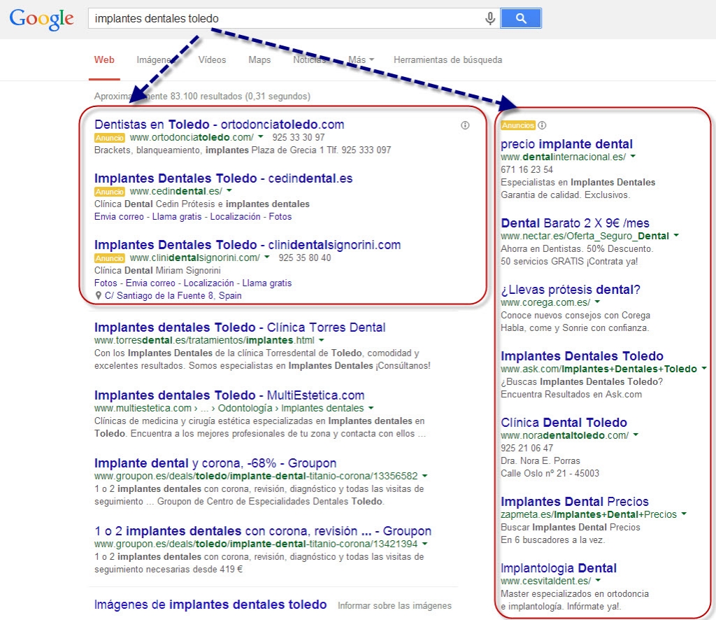 Uno de los elementos más relevantes de la publicidad en Google Adwords es que no se paga por aparecer. Sino que, sólo se paga cuando alguien busca alguna cosa relacionada con su actividad, donde y cuando usted decida (segmentación) y "pincha" en el anuncio. Sólo se paga cuando llegan a su web.